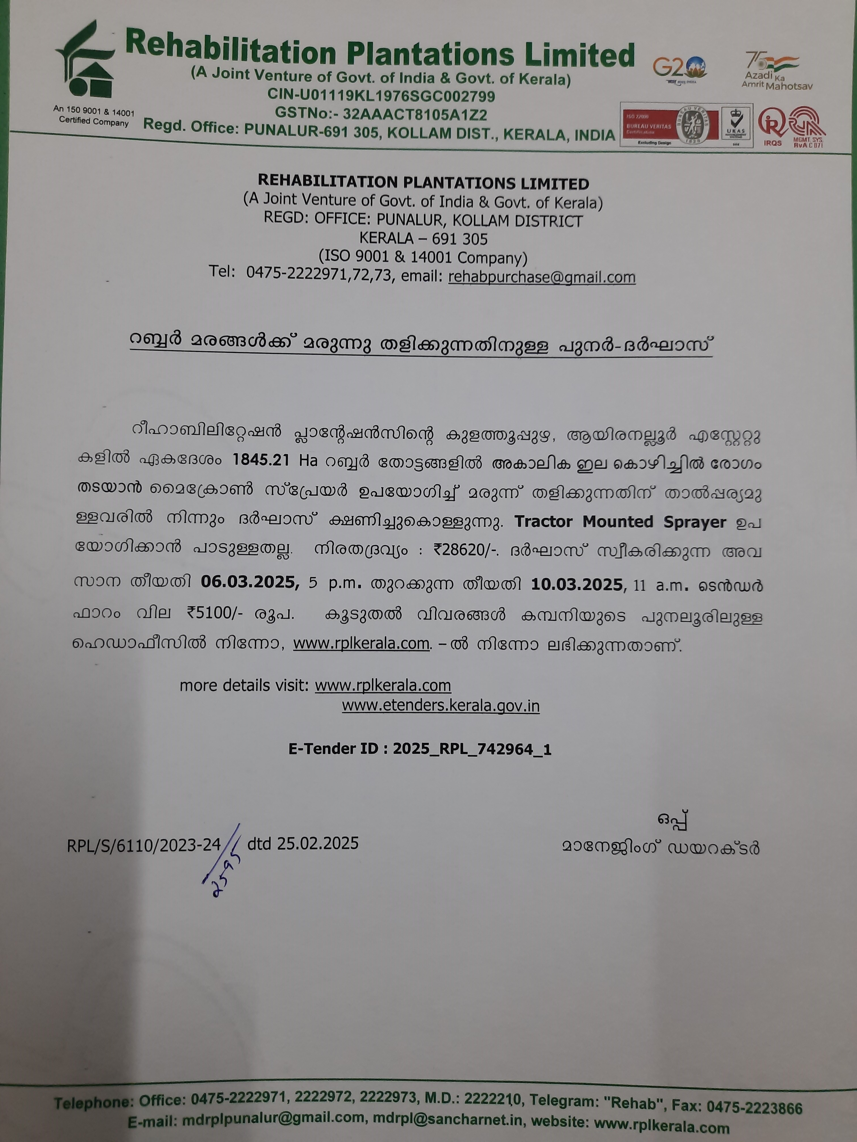 E-tender invited for the